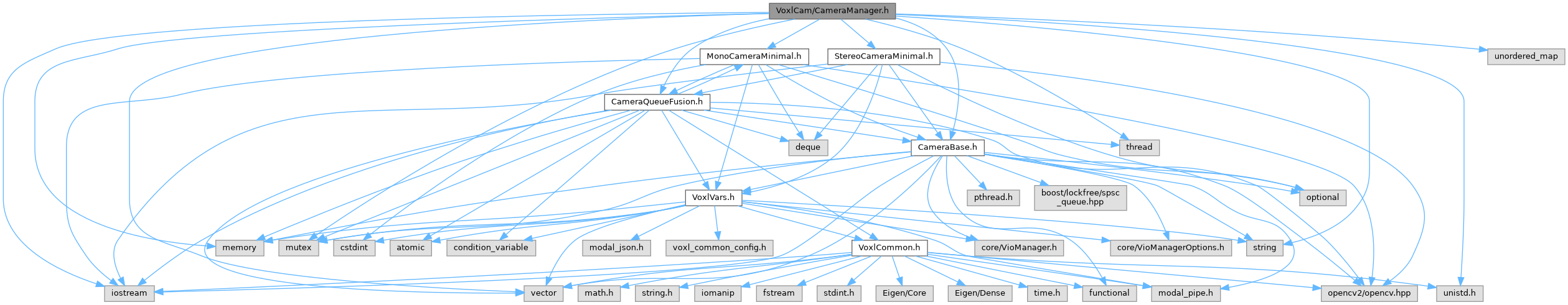 This header defines the CameraManager class, which provides centralized management of all camera instances in the VOXL OpenVINS system. It handles camera creation, initialization, and lifecycle management.