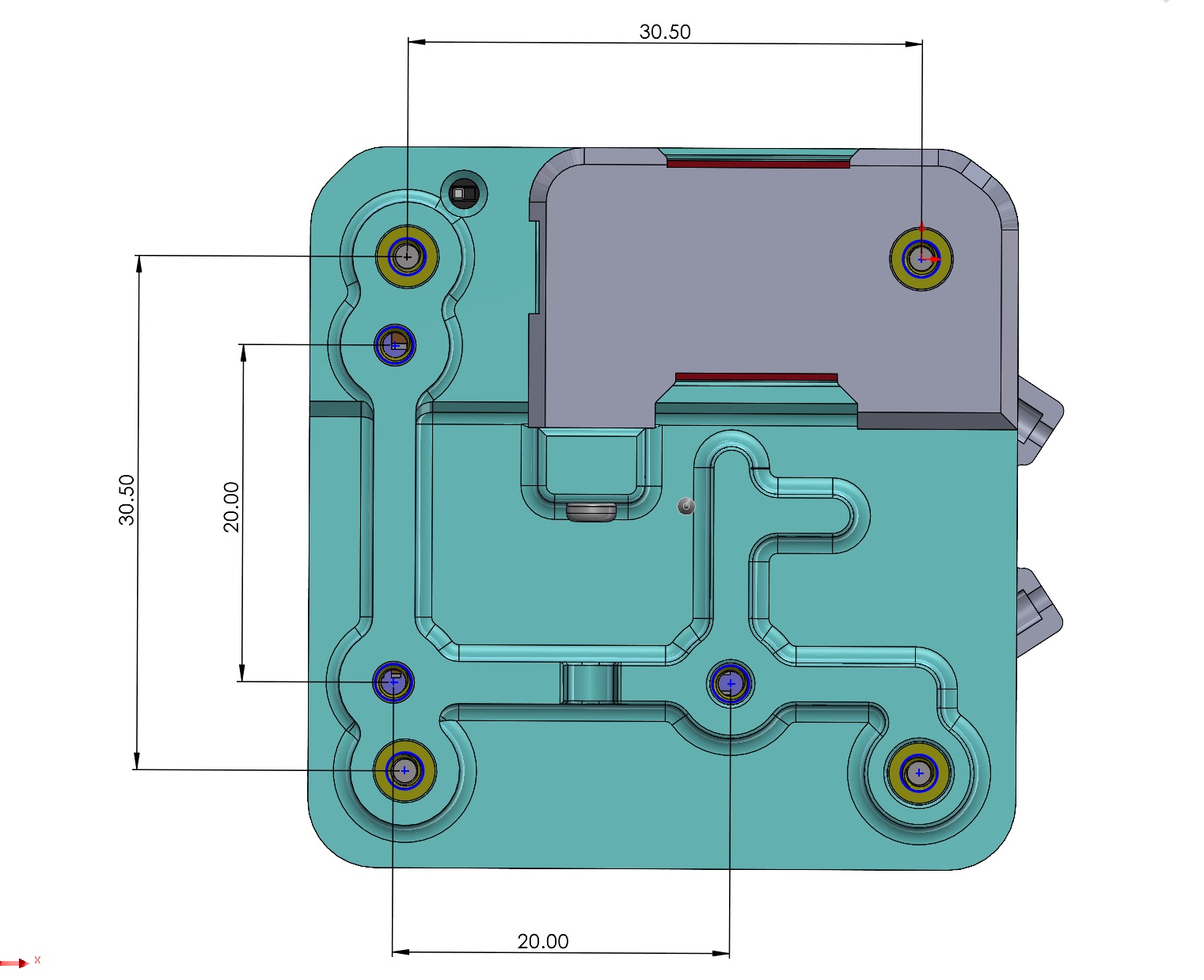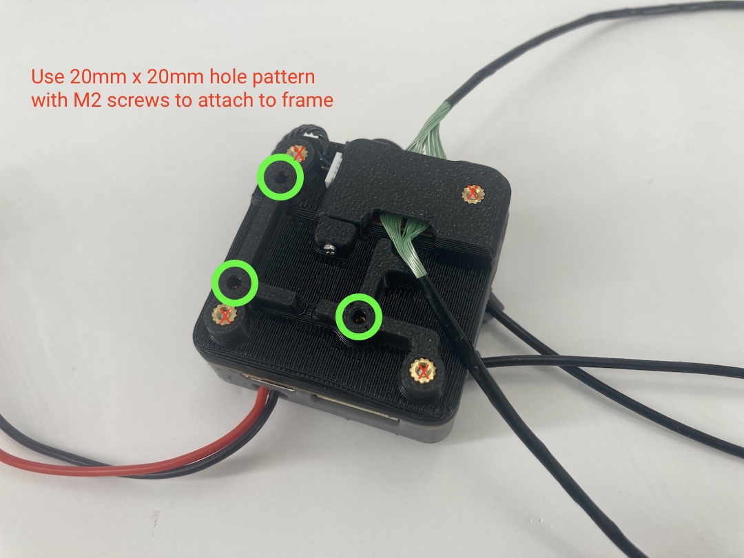 - Primary Mounting Hole Pattern - 20mm x 20mm - M2 screws - use this to mount to frame
